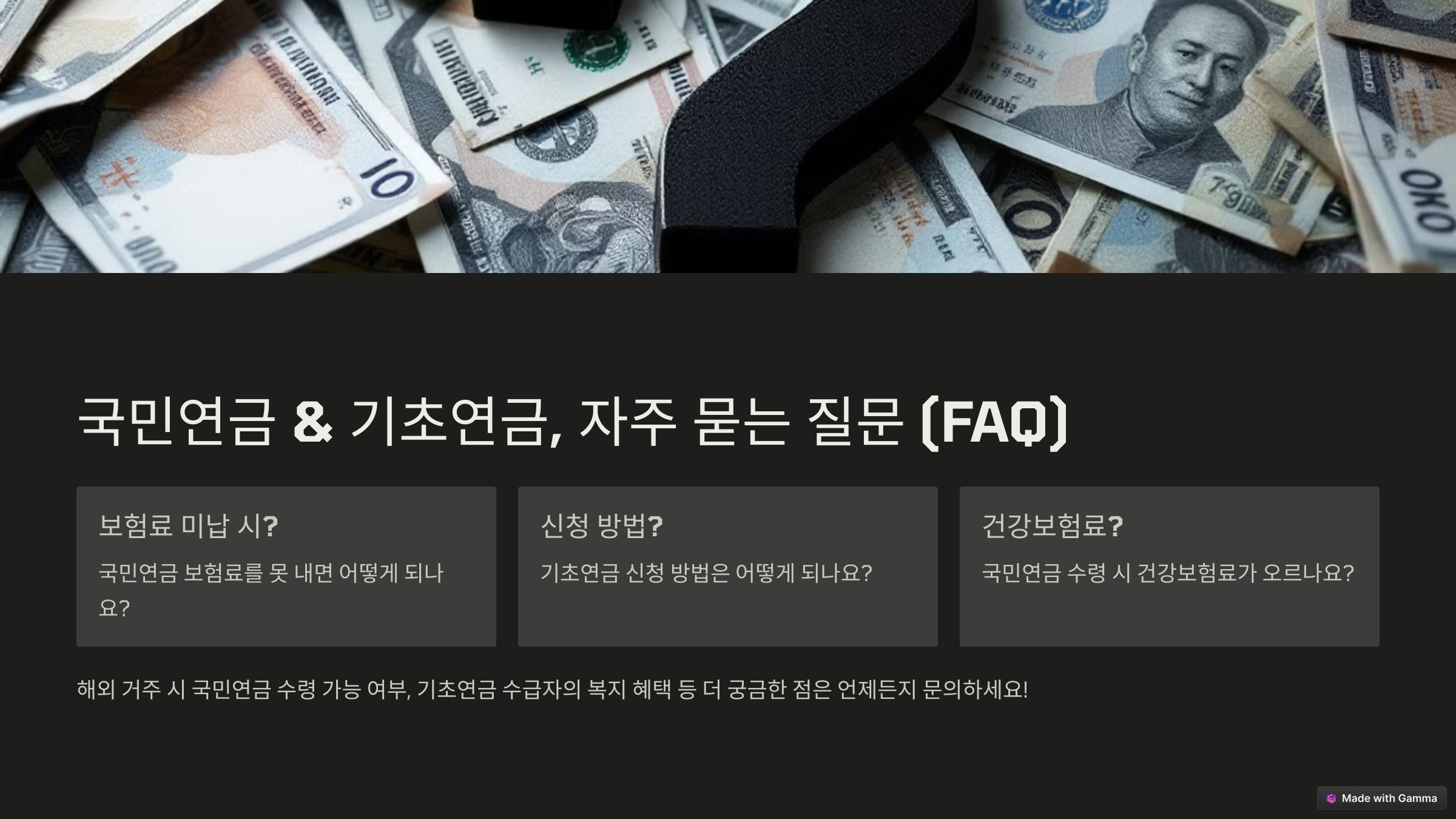 국민연금과 기초연금에 대해 많은 분들이 궁금해하는 질문들을 정리했어요. 신청 방법, 수급 기준, 중복 수령 여부 등 꼭 알아야 할 정보를 확인해 보세요! 😊