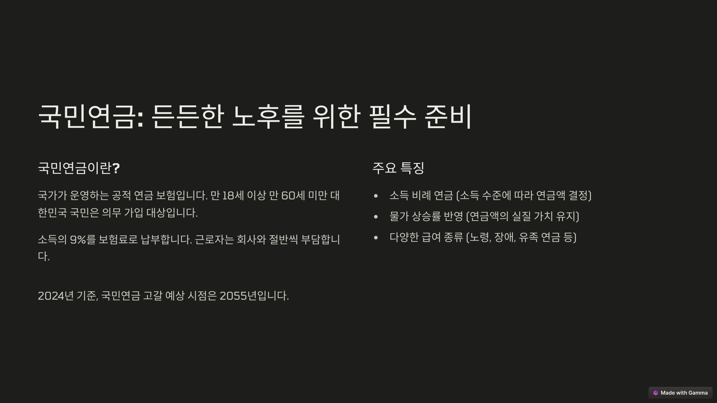 📢 국민연금은 소득이 있는 사람이 가입해야 하고, 기초연금은 저소득층을 위한 제도라는 점이 가장 큰 차이예요.